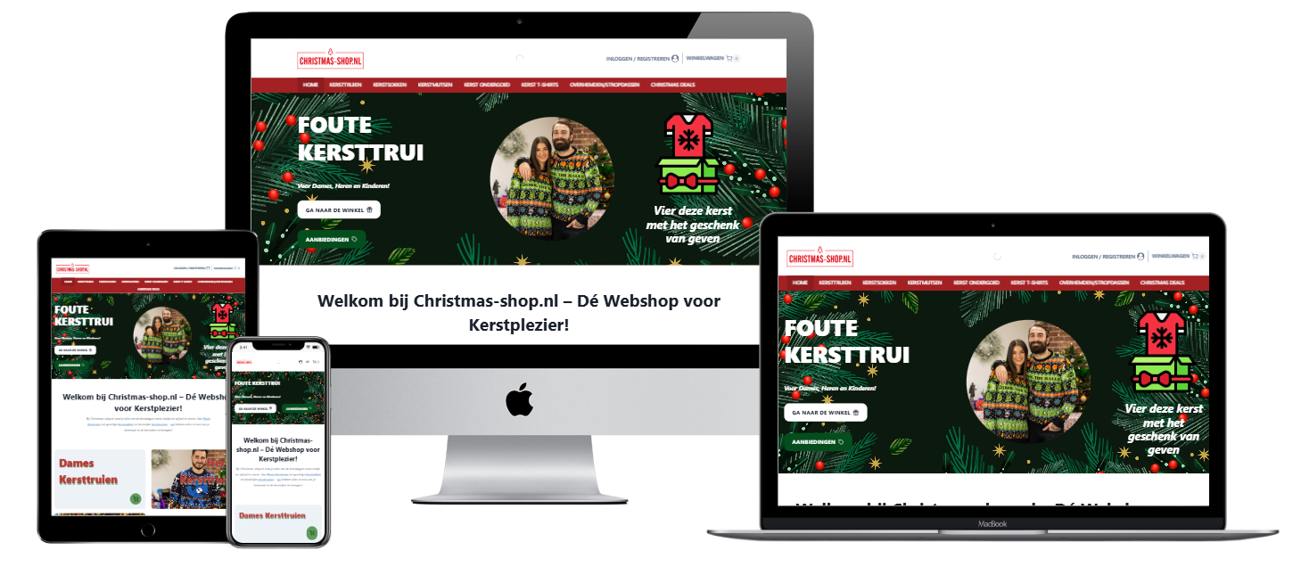 Voor Christmas-shop.nl hebben we een feestelijke en gebruiksvriendelijke webshop ontwikkeld die volledig inspeelt op de vrolijke en humoristische sfeer van de feestdagen. De website biedt een overzichtelijk en aantrekkelijk platform waar klanten eenvoudig kunnen browsen door het uitgebreide assortiment aan foute kersttruien, kerstsokken en kerstmutsen.
