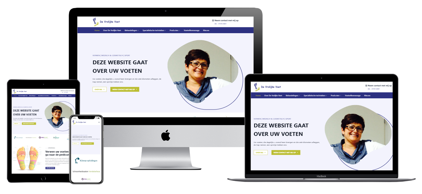 Voor deze medisch pedicure hebben we een overzichtelijke en uitnodigende website gerealiseerd die perfect aansluit bij de behoeften van de doelgroep. De website biedt een duidelijke presentatie van de aangeboden behandelingen, waaronder gespecialiseerde zorg voor voetproblemen en preventief advies.